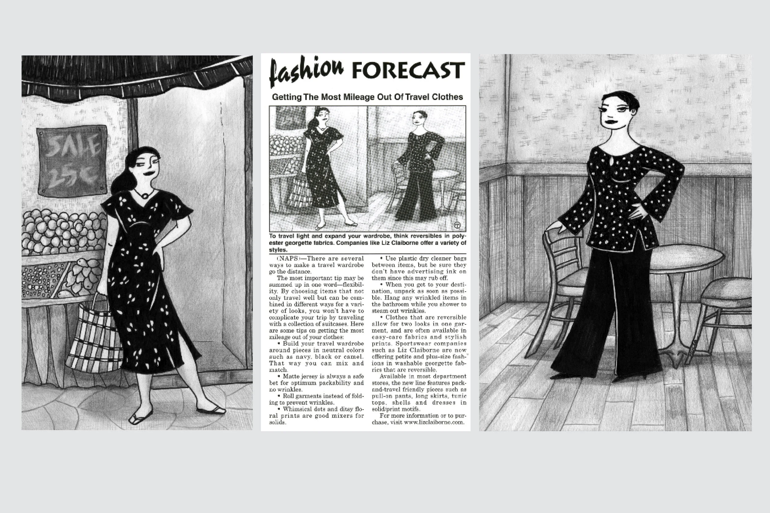 Illustrated Ad placed by Liz Claiborne Inc. to congratulate Women's Wear Daily 100th Anniversary.