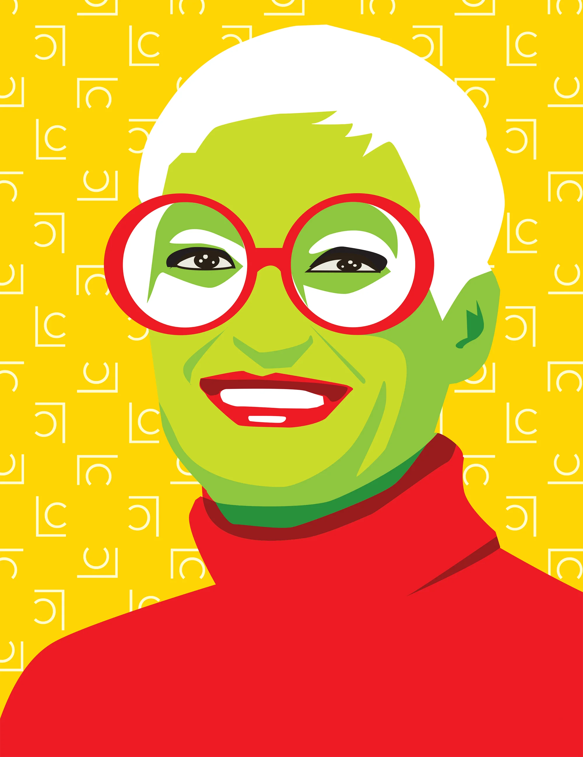 Liz Claiborne Portrait Illustration: Part of a set. Images were printed and stretched to hang in executive floor.